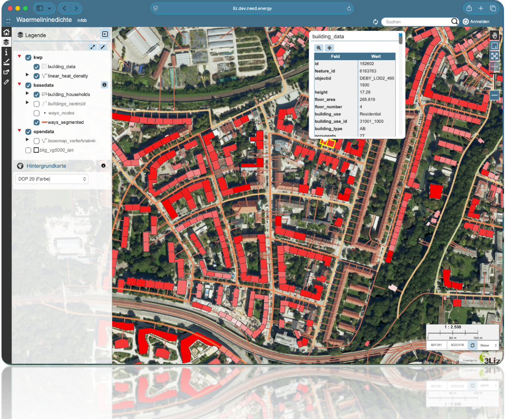 The Linear Heat Density use case demonstrates the capabilities of infDB in the context of municipal heat planning (KWP).