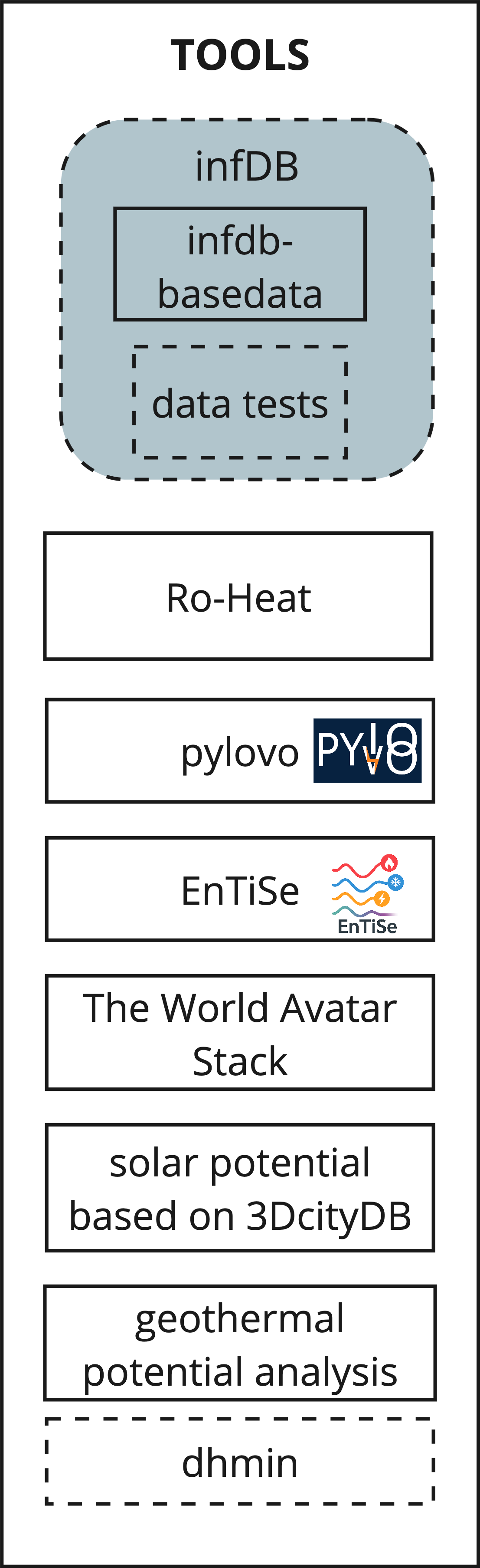 If you want to or create or integrate your own software or scripts into the infDB ecosystem, you can use the template for a devContainer provided by the infDB. A more detailed description can be found under Tools -> infdb-template.